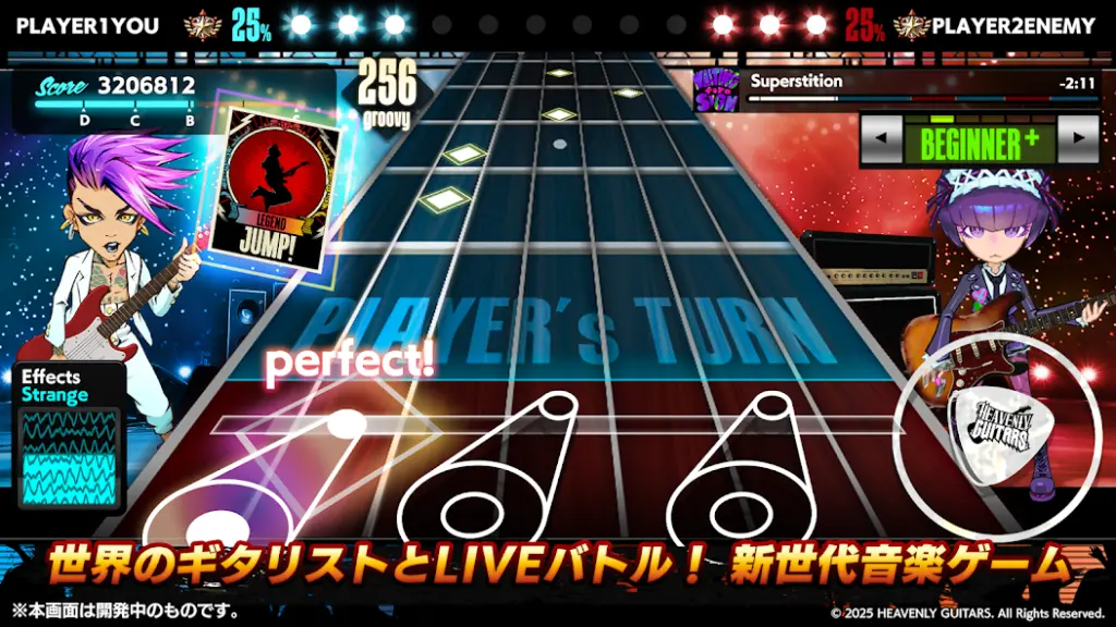 Heavenly Guitarsで読み合いと音色を極めるライブバトル♪ ライブバトル中に難易度を自在に変更して相手を翻弄♪ 『Heavenly Guitars』ではただの音ゲーにあらず♪対戦中にリアルタイムで難易度を上下させて、新感覚バトルです。相手がコンボを決めているとき...